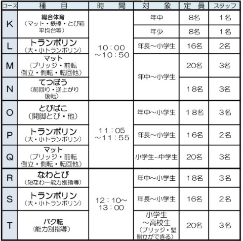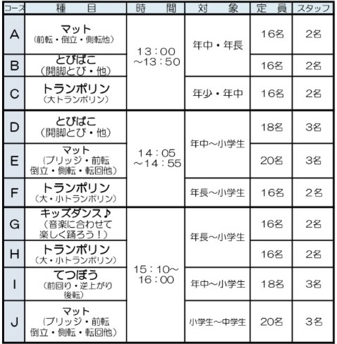 - 各コース定員になり次第、〆切とさせて頂きます。